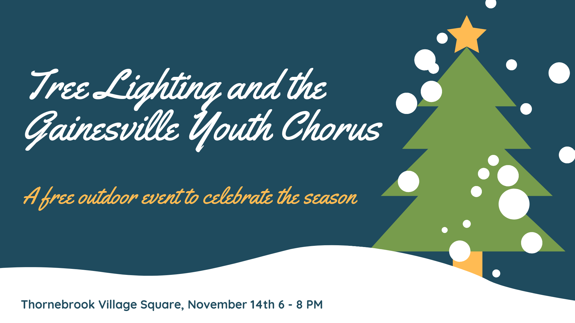 Join us as we light the tree accompanied by carols from the Gainesville Youth Chorus. This enchanting event will take place in the Thornebrook Village square. This event has unfortunately ...
